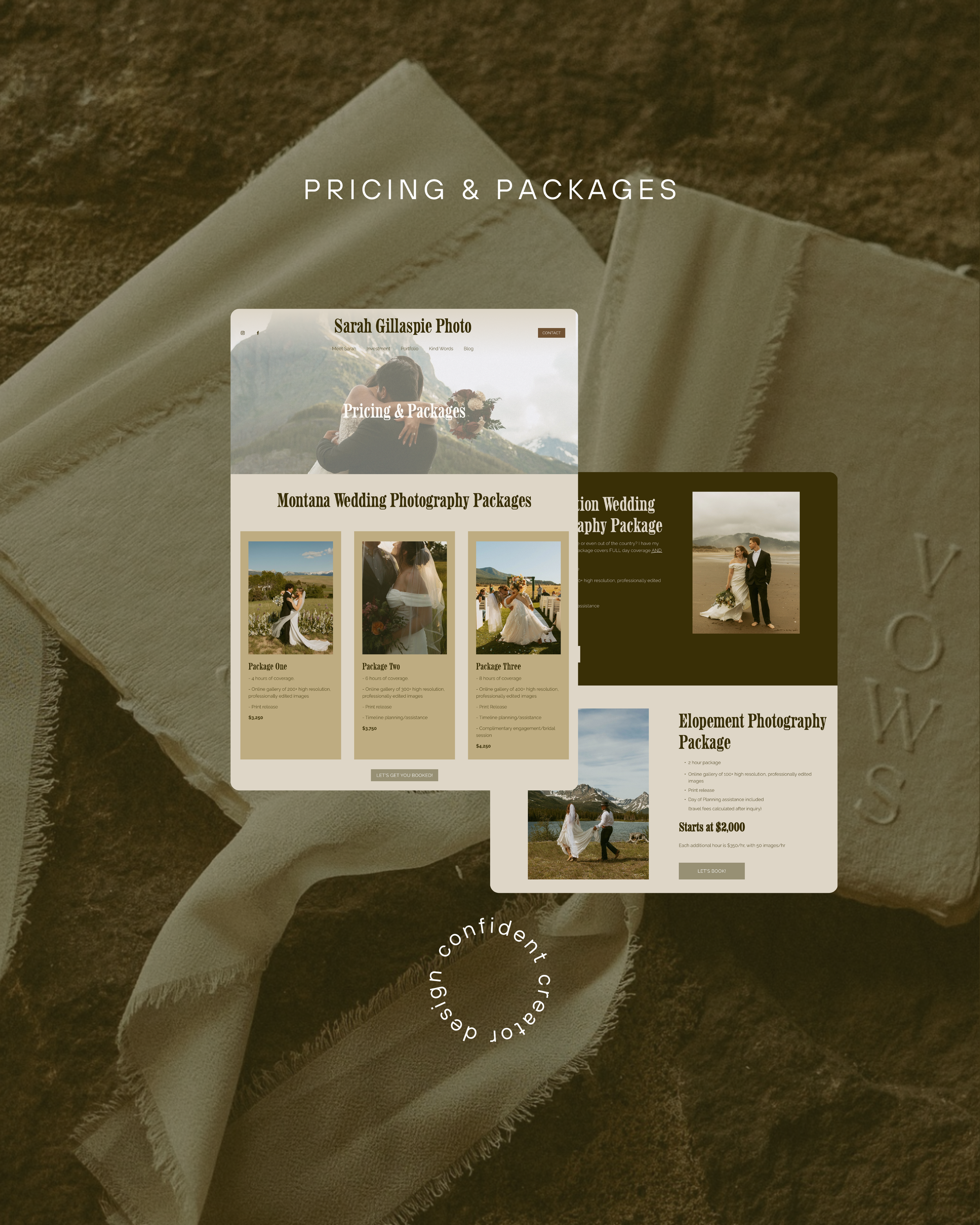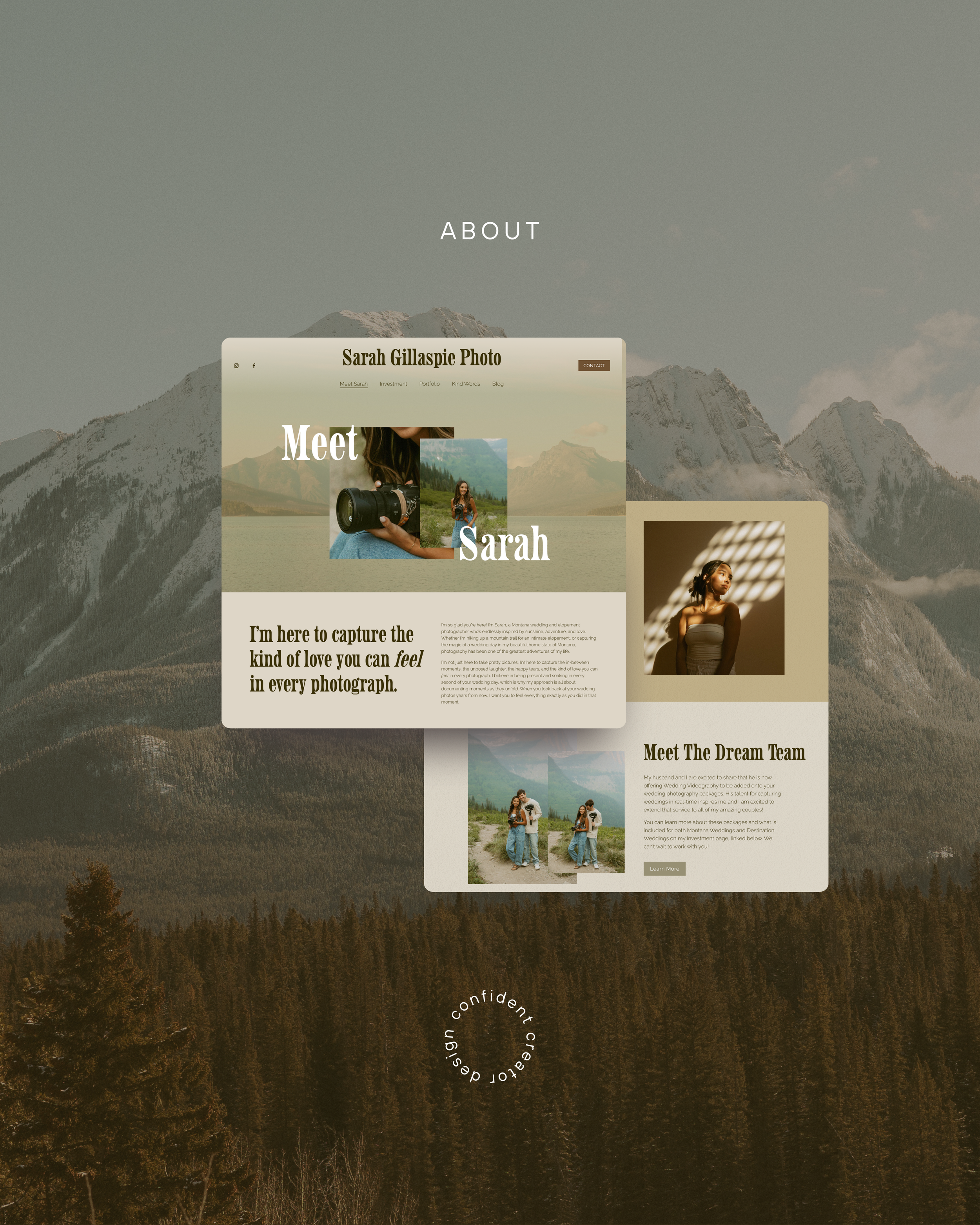 I designed the website for Sarah Gillaspie Photography with an earthy, romantic, and dreamy aesthetic that reflects her soulful, story-driven work. The custom color palette features warm neutrals and soft natural tones, creating a calming, down-to-earth browsing experience for her clients.